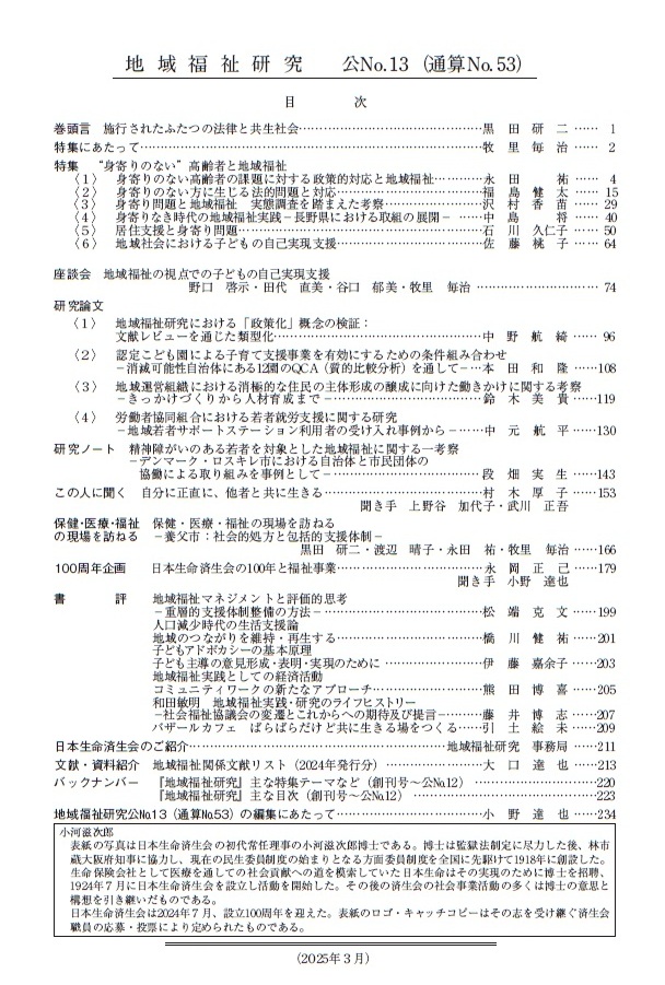 地域福祉研究 公No.13(通算No.53) 主な内容(目次より)