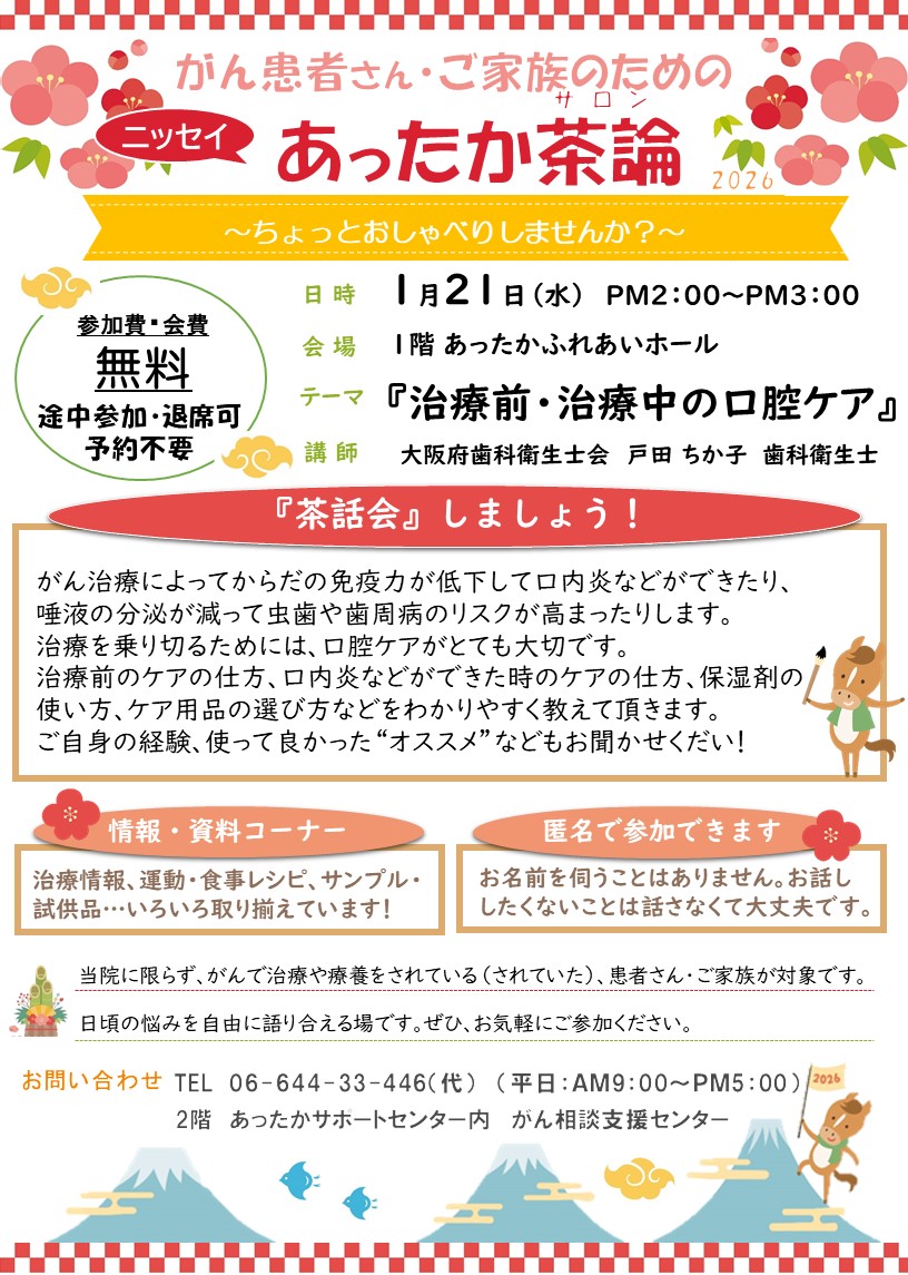 1月15日(水)『がん化学療法~治療をしながら自分らしく過ごそう!』 【終了】 |