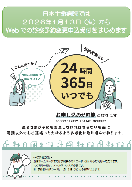 2026年1月13日(火)より、WEBで予約変更申込ができるようになります。